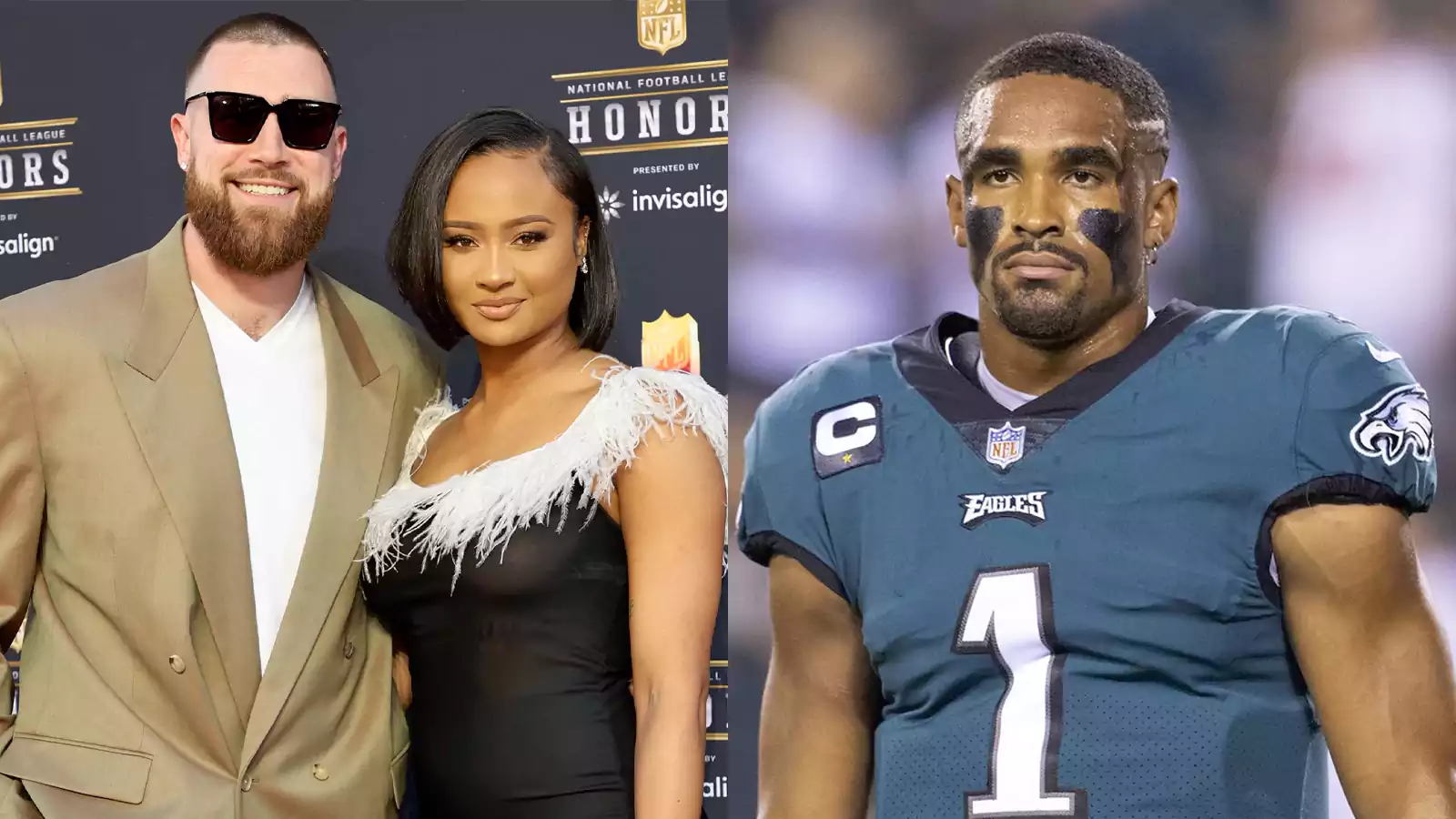 Kayla Nicole, who previously dated Chiefs tight end Travis Kelce prior he started dating Taylor Swift, reposted a clip of Eagles quarterback Jalen Hurts to show her support for the team. “Fly eagles fly,” Kayla posted on X Monday night, after seeing Hurts sitting courtside at the Wells Fargo Centre in Philadelphia, where the Sixers defeated the Lakers, 138-94. “Y’all have eyes, too,” the 32-year-old Instagram influencer added in a separate post, beside a crying-laughing emoji. Kayla did not expand further, but several X users remarked that Hurts is no longer available, while others recalled the Chiefs’ 2023 Super Bowl victory over the Eagles. He has been dating Bryonna “Bry” Burrows on and off since his days at the University of Alabama, where he played for three seasons before switching to the University of Oklahoma.On Oct. 24, both of them made a rare red carpet presence at the TIME100 Next Gala in New York City, dressed to the nines in matched costumes.