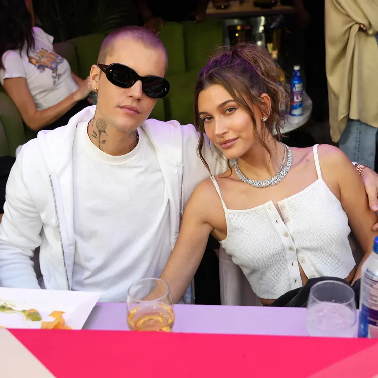 On her TikTok tonight, Hailey Bieber shared a video of her sitting on a couch in her and Justin Bieber's living room drinking a glass of red wine in comfy clothes