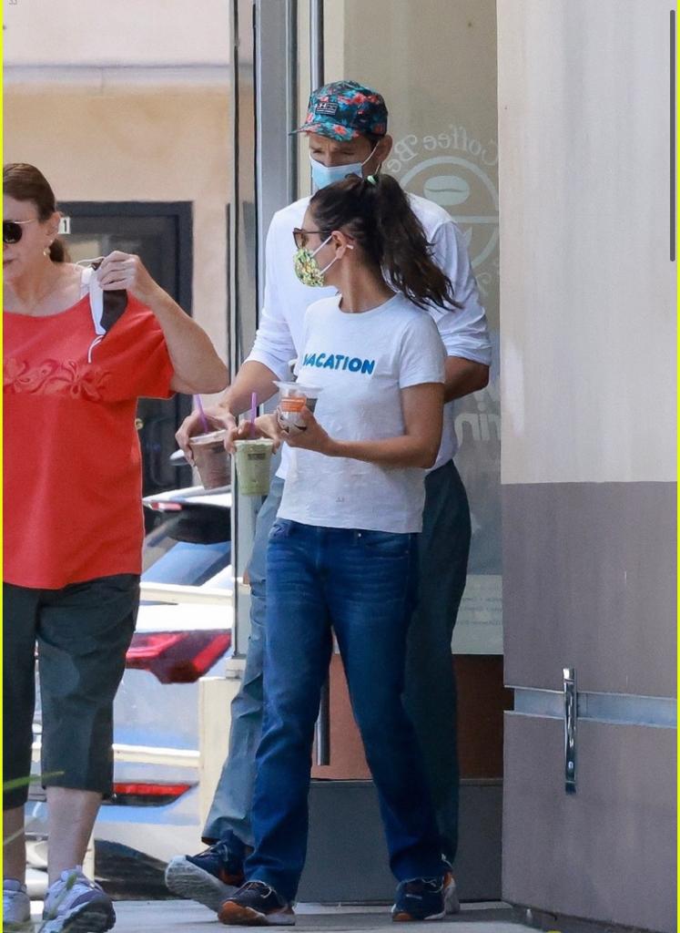 The married duo wore their face masks